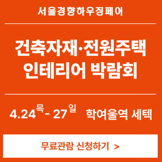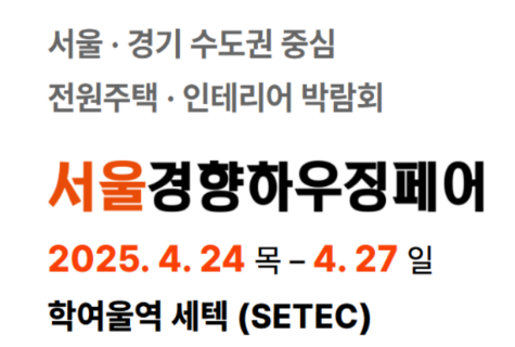 2025년 수도권 건축박람회 '서울경향하우징페어' 사전등록하면 무료입장! 수도권 대표 건축자재·전원주택·인테리어 박람회 '2025 서울경향하우징페어'가 4월 24일(목)부터 27일(일)까지 4일간 학여